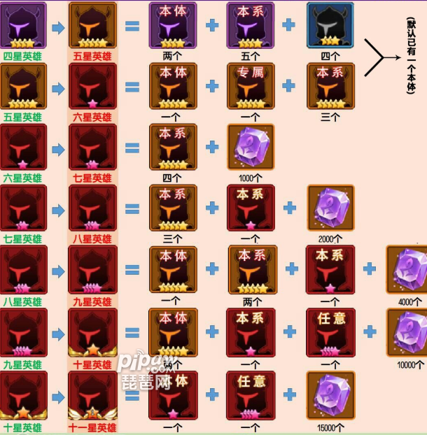 1.四星英雄~十一星英雄高清图:
