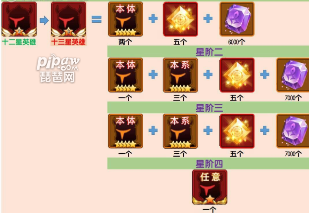 每个阶段的需求其实都是不一样的,这里给大家特别的详细划分出来了,只要按照小编的方法来升星的话就可以提前的准备好所需要的材料,其实每个阶段要求的材料都不一样,所以大家要是少备了就很容易卡在星级,就会非常的麻烦,这个时候大家最好是用上面的材料大全表来参考,这样就可以很精准的计算出相关的内容了!