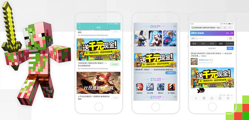 除了软性材料的支持意外,硬广也是琵琶网的核心竞争力之一,这次除了轮播页面以外,也充分的利用了琵琶网内页广告,测试表,icon推荐等多重的广告组合,无死角的覆盖了琵琶网所有的玩家,也为我的世界带来的大量的忠实用户,新增数量在短短一周内超过了15000名,留存率也超过了37%。同时由于有论坛互动等资源位配合,玩家也为官方制造出了许多精美的图文作品,起到了很好的宣传作用,也为厂商带来了极大的回报。