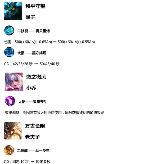 此次被调整的英雄比较多,而且多数是冷门英雄,长期坐冷板凳的马可波罗和姜子牙加强了一波,应该会得到一些出场机会,而强势许久的墨子终于被削弱了,胜率应该会有所影响。