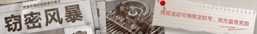 活动说明:活动期间通过协助克里斯蒂娜破译密码条,完成破译即可领取奖励。活动关卡会逐日开放,共5关。完成所有关卡可获得活动限定称号【密码侦探】、异方晶等奖励。